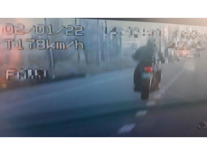 Polițiștii au depistat, pe Drumul Național 2, pe 2 ianuarie 2022, un motociclist care circula cu 178 km/h, în localitate, a refuzat să oprească la semnalul agenților și, în timp ce era urmărit de aceștia, și-a continuat cursa fără a ține mâinile pe ghidon.