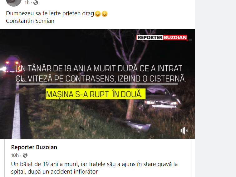 Tânărul aflat la volan, care a scăpat cu câteva contuzii, mai produsese un accident anul acesta în care a fost de asemenea rănit. Sâmbătă seara când a avut loc tragedia ar fi circulat cu viteză.